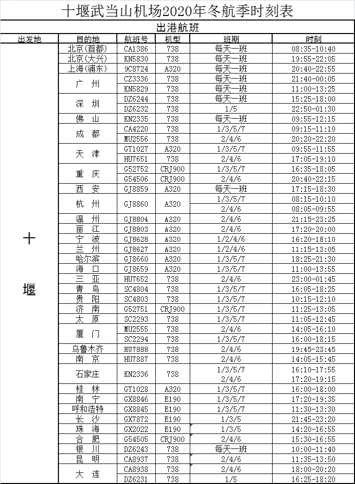 好消息! 10月25日,武当山机场 正式开始执行冬春航季航班计划 换季后机场将对部分航线以及 航班班期时刻进行相应调整