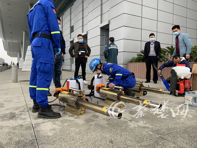 26日上午,十堰武当山机场对航站楼等区域开展全面消杀,为即将到来的复航迎客做好充分准备。26日上午9时许,在武当山机场站前平台,16名蓝