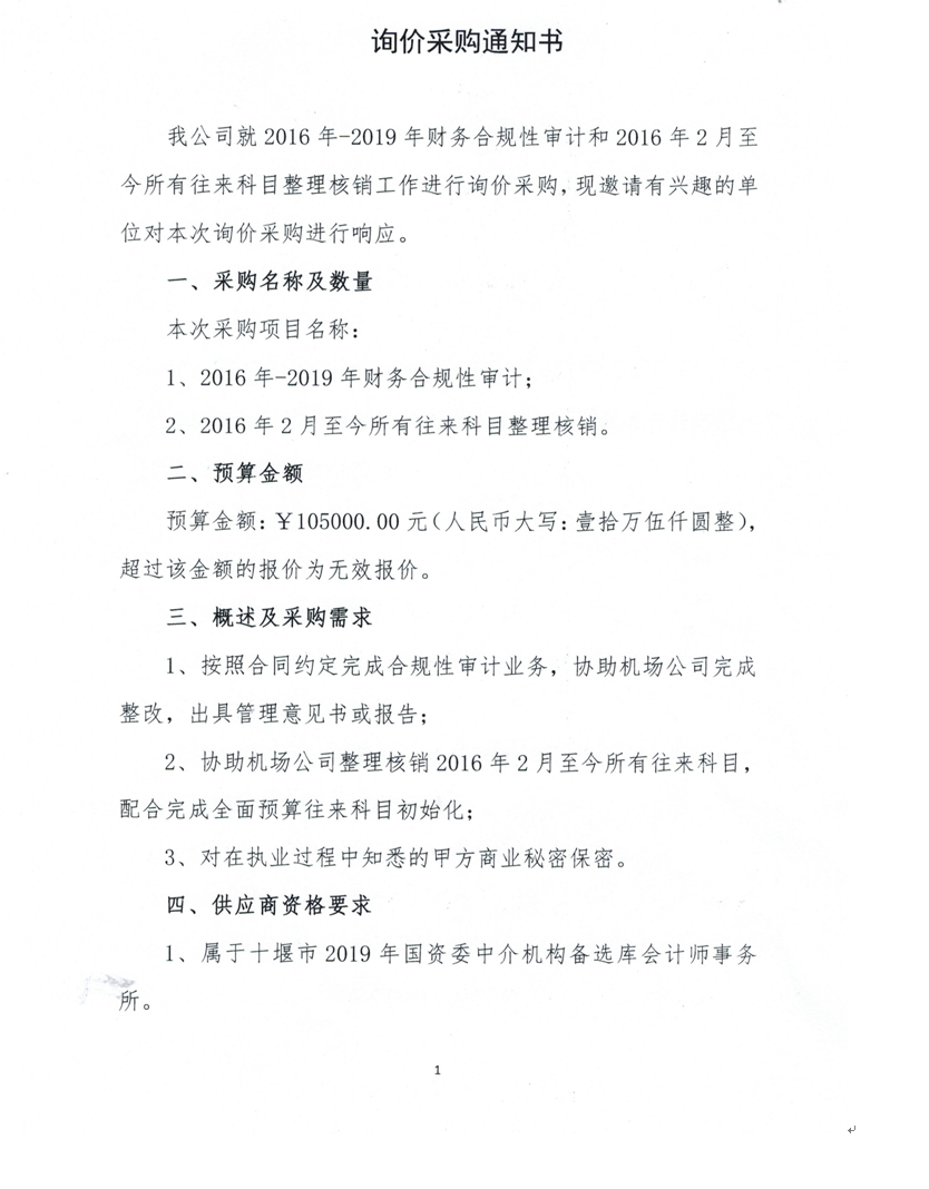 十堰武当山机场集团有限公司,对航站楼商业规划咨询服务项目进行询价采购,现邀请有意愿且符合条件的单位对本次询价采购进行响应。一、采购