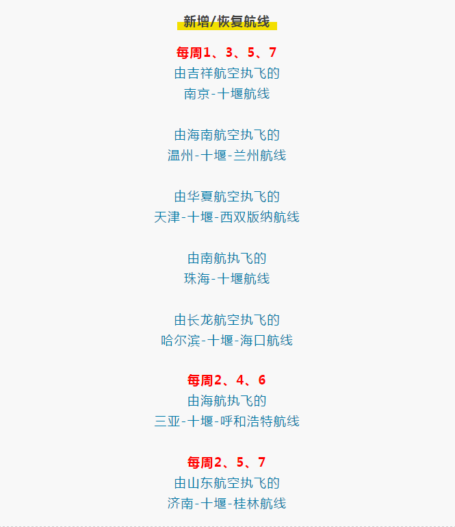 10月27日,武当山机场将执行冬春季航班时刻表,届时,在调整原有航班时刻基础上将新增4个城市航线,恢复4个城市航线,共计通达32个城市。201