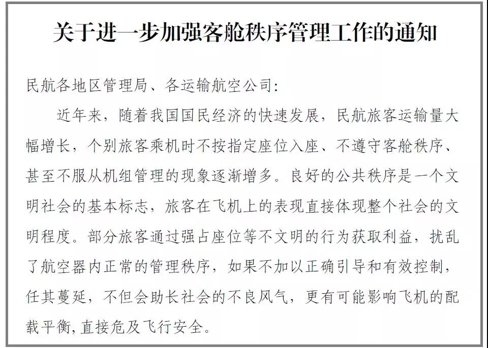 近日,民航局正式下发《关于进一步加强客舱秩序管理工作的通知》(以下简称《通知》),进一步加强客舱秩序管理,保障和督促客舱乘务员履行