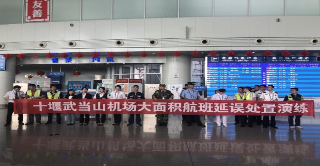 7月11日下午15:30分,十堰武当山机场机场组织开展了大面积航班延误处置演练,机场公司各保障部门、驻场单位、航站楼商超以及业务外包单位