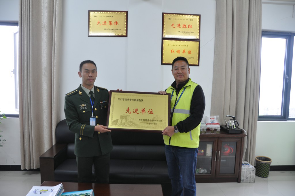 4月25日上午,十堰市白浪经济开发区消防大队赴武当山机场调研指导消防工作,并代表湖北省消防安全委员会为机场消防护卫大队颁发荣誉奖牌,