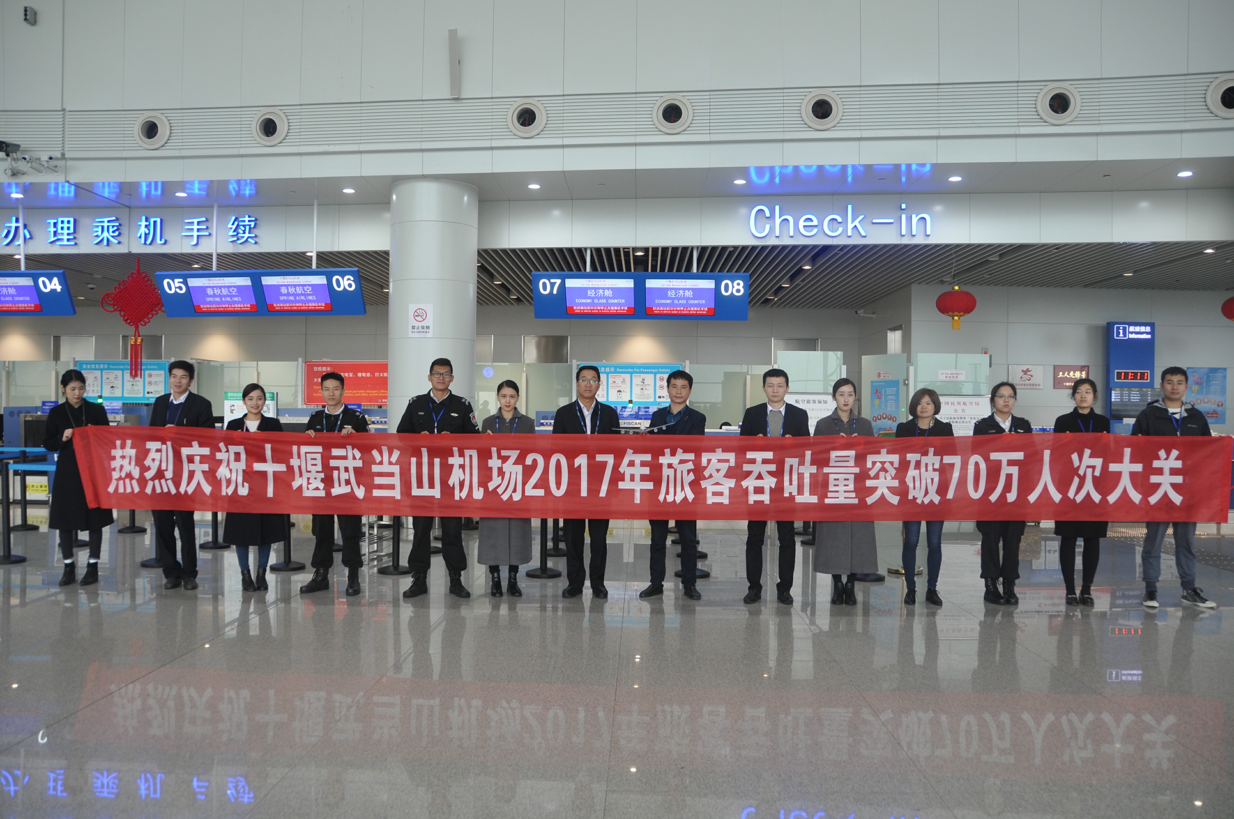 10月15日11时25分,随着CA1634十堰—天津航班旅客蔡先生办理好乘机手续,成为今年十堰武当山机场第70万名进出港旅客,标志着武当山机场年旅