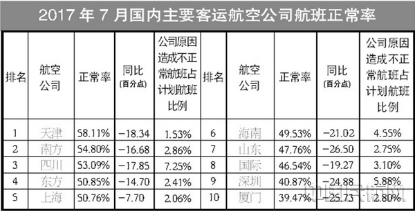 国内客运航空公司按照2016年日均执行航班架次划分,日均执行航班在250架次(含)以上的10家航空公司为国内主要客运航空公司,日均执行
