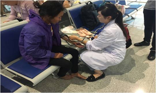 5月29日,国航CA8937航班经停本场过程中,一名过站旅客身体出现呕吐、站立不稳的异常状况,机场地服人员发现后立即上前询问其原因,并通
