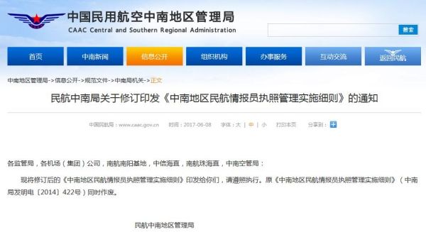 6月2日,民用航空中南地区管理局印发了修订后的《中南地区民航空中交通管制员执照管理实施细则》(以下简称“细则”),本细则适用于中南地