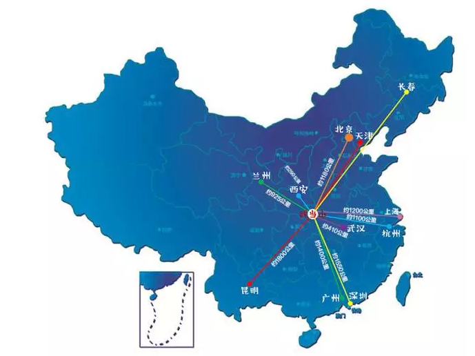 目前,武当山机场已开通14条航线,通达北京、上海、广州、深圳、武汉、杭州、西安、天津、昆明、兰州、重庆、郑州、大连、海口、南宁、石家