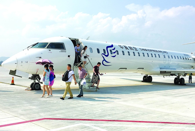 昨日16时30分,一架执飞重庆—十堰—武汉的华夏航空有限公司B-3379客机稳稳降落在武当山机场,这标志着武当山机场正式开通重庆至十堰航线