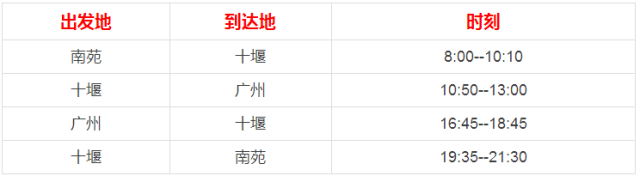 北京(南苑)-十堰-广州 本航线3月26日开通 由中国联合航空公司执飞 每周4班(1/3/5/7) 具体班期及时间表如下 ↓↓↓ 武当山机场航班一览表