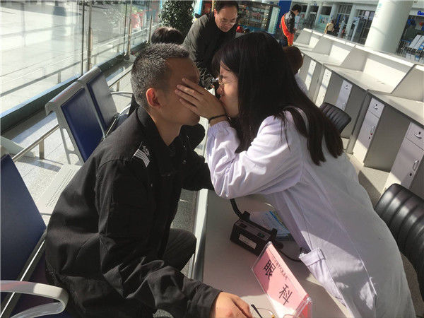 人医眼科中心的医生免费给员工、旅客检查