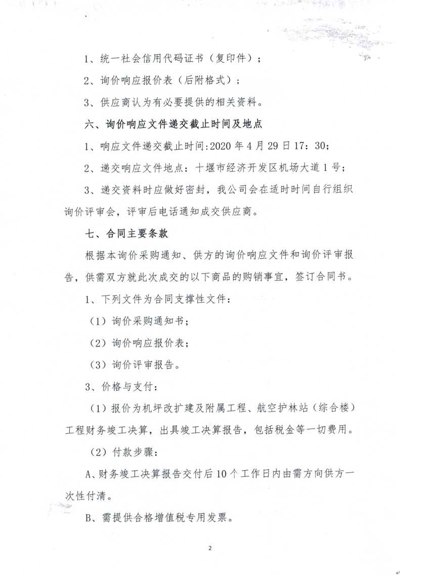 机坪扩建及附属工程、航空护林站(综合楼)工程竣工决算询价采购通知书